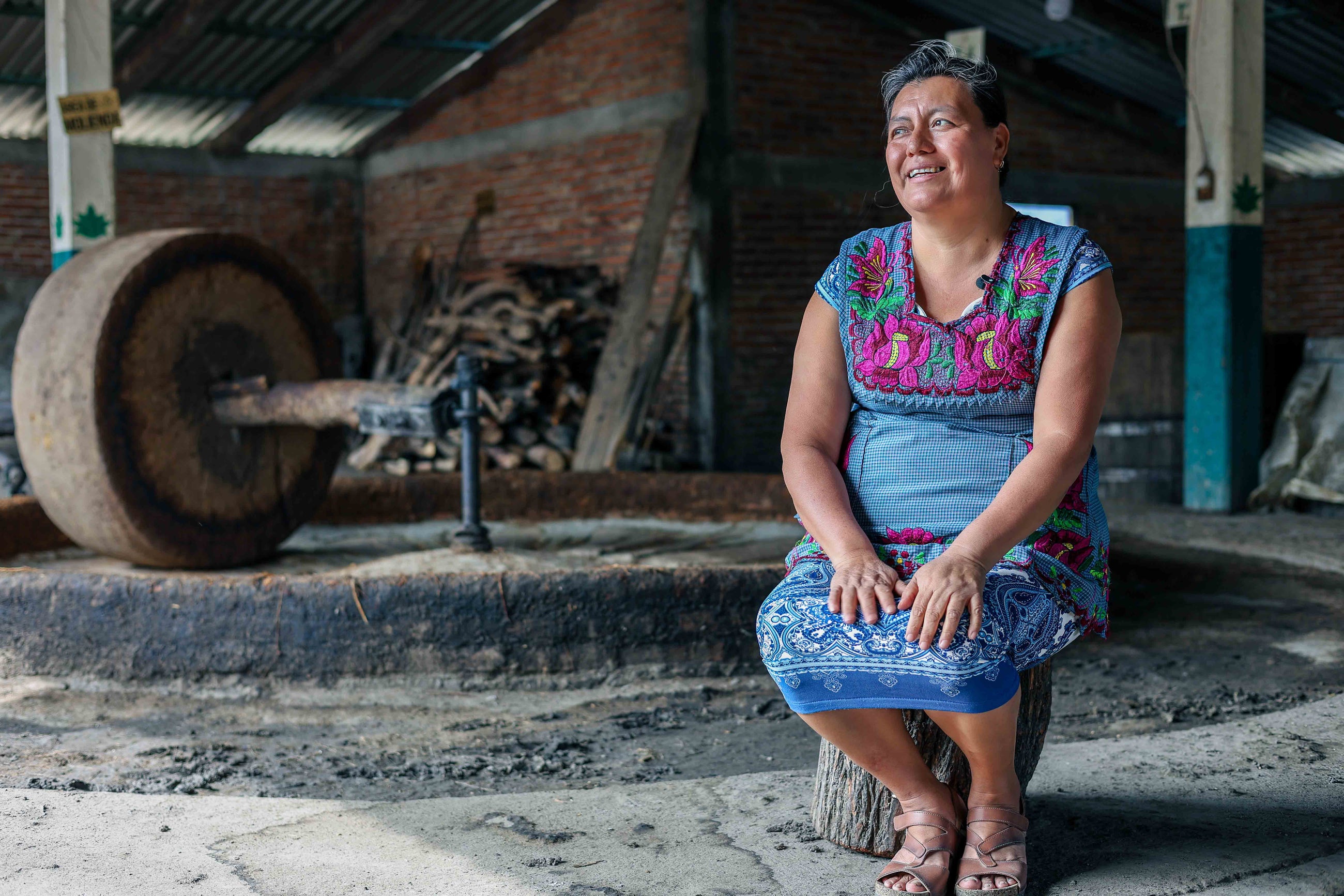 Originaria de San Baltazar Chichicapam, Oaxaca, cuenta con 15 años de experiencia en la elaboración de mezcal artesanal, siguiendo una receta transmitida por dos generaciones. Su proceso conserva las prácticas tradicionales: cocción en horno cónico de piso durante cuatro días, molienda en tahona tirada por caballo, fermentación en tinas de sabino y destilación en alambique de cobre, logrando un mezcal que refleja el conocimiento heredado y la dedicación de su oficio.
