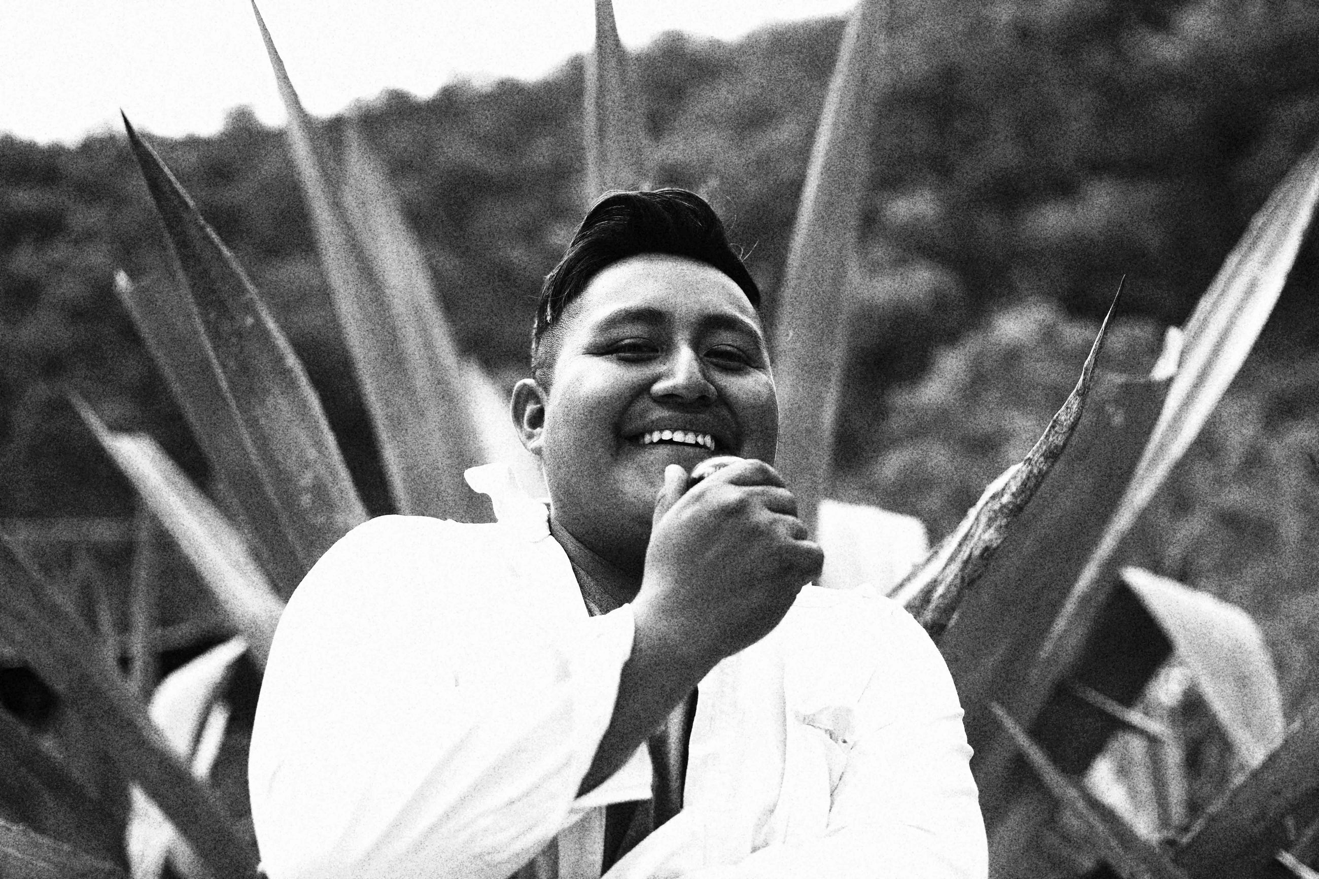 Originario de Santa Catarina Albarradas, Oaxaca, cuenta con 4 años de experiencia en la elaboración de mezcal ancestral, siguiendo una receta familiar que se ha transmitido por cinco generaciones. Su proceso combina tradición y precisión: cocción en horno cónico de piso durante tres días, reposo de un día, molienda a mano con mazo, fermentación en tanque de cemento donde se añaden varas de timbre —corteza de árbol que aporta notas distintivas— y destilación en olla de barro, dando vida a un mezcal con carácter auténtico y herencia profunda.